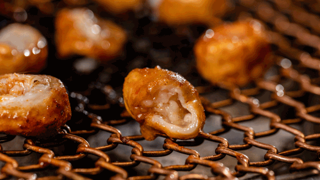 好的乌鱼子,色如琥珀黄酒,形如拉长爱心,身需半透明,心需软硬兼备;切片简单炙烤至表皮微焦,佐蒜片与葱段食用,一瞬间咸鲜满口、辛香上头,古老而原始的刺激味道。