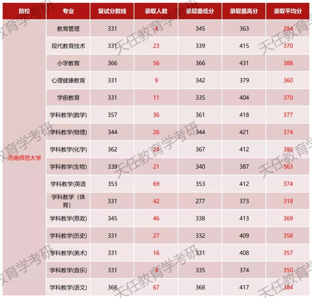 教育管理专业录取4人,最低分345,最高分363,平均分354;