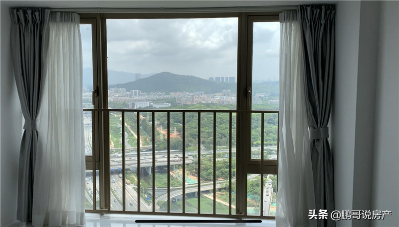 这是阳台的部分,从阳台向远处看,景观不错,前排没有遮挡,远处有高楼和春笋、瑞府、卓越浅水湾、浪琴半岛等,还有一点点海景,景观是这几套中最好的。