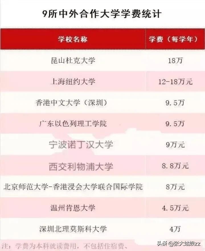 中外合资院校的学费是最贵的,咱们普通老百姓真的不用考虑了,太吓人了。以下面的九所学校为例子,昆山杜克大学,上海纽约大学,西安利物浦等学校一年的学费就高达十几二十万,这仅仅是新生的学费,如果是国际生,更贵。