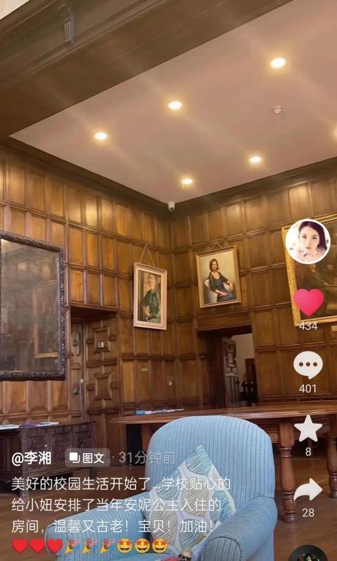 前几天,李湘在自己的账号中,晒出了女儿王诗龄的入学照。表示王诗龄在学校里面住的是当年安妮公主入住的房间。