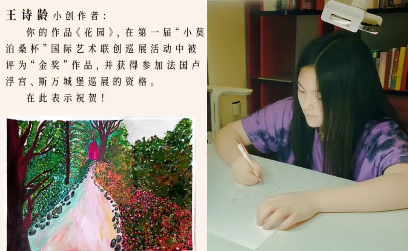 从小在爷爷身边,耳濡目染下,王诗龄从小就对绘画感兴趣。