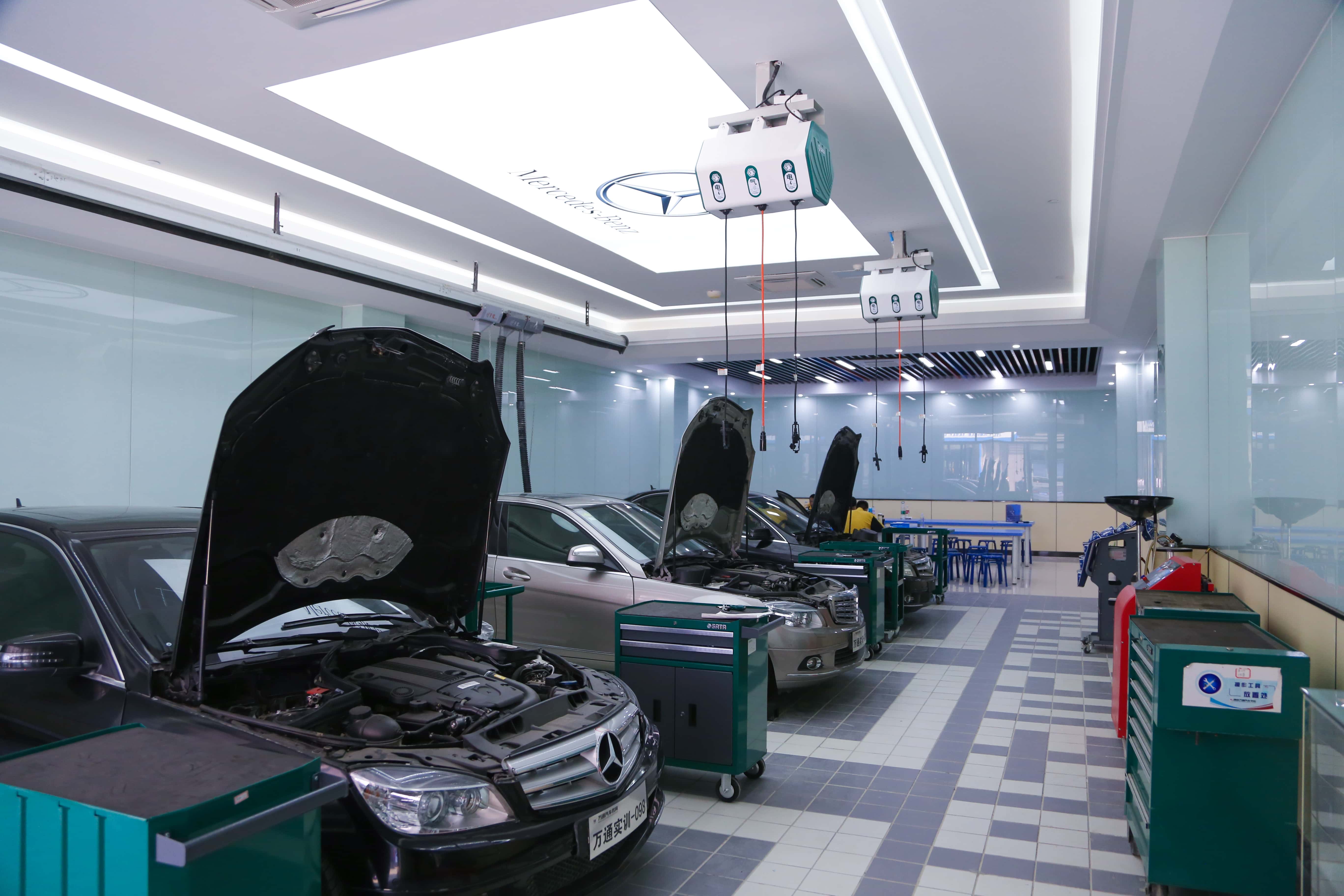 小编实地到上海万通考察,今天为大家介绍学校情况。走进校门,“技能,让生活更美好”,8个大字异常醒目,这就是上海万通汽车学校。校内共设奔宝奥高端车、新能源、美容改装、轨道交通、汽车商务等几大实训室。