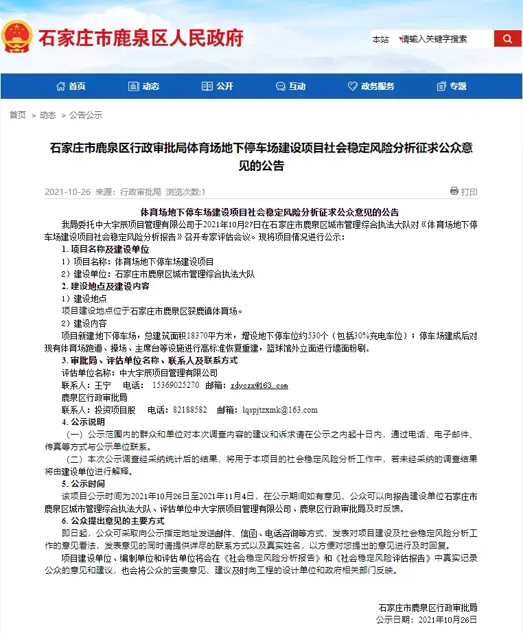项目位于石家庄市鹿泉区获鹿镇体育场,总建筑面积18370平方米,增设地下停车位约530个(包括30%充电车位)。