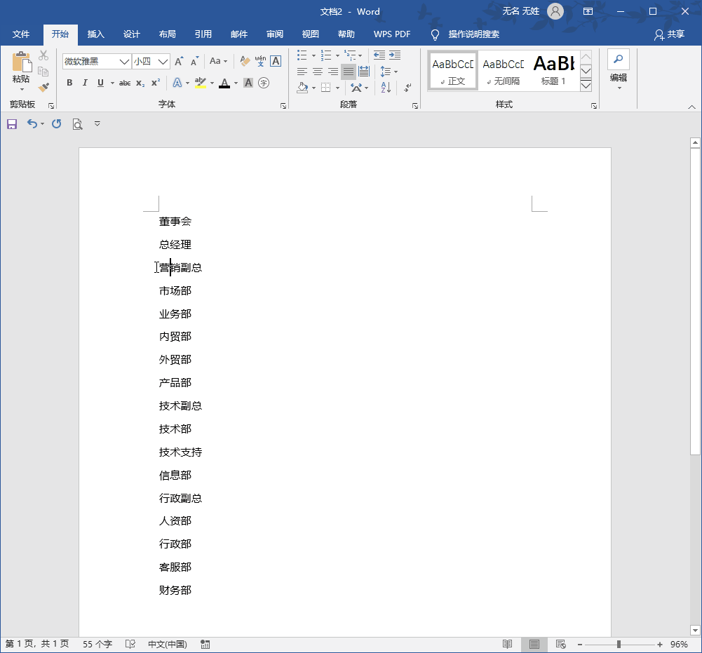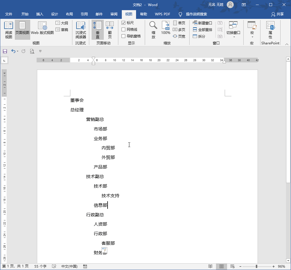 将同一级别的部门对齐,下一层设置为右缩进!可以通过视图下的标尺或者按TAB键快速调整