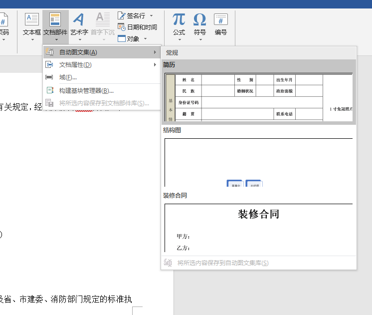 快速录入公司【结构图】即定义的名称后按F3键即可快速调出了!对于表格比如插入一个个人简历后按ENTER键即可!如果想要快速制作一个合同模板同样输入自定义的【装修合同】后按ENTER键即可插入了!