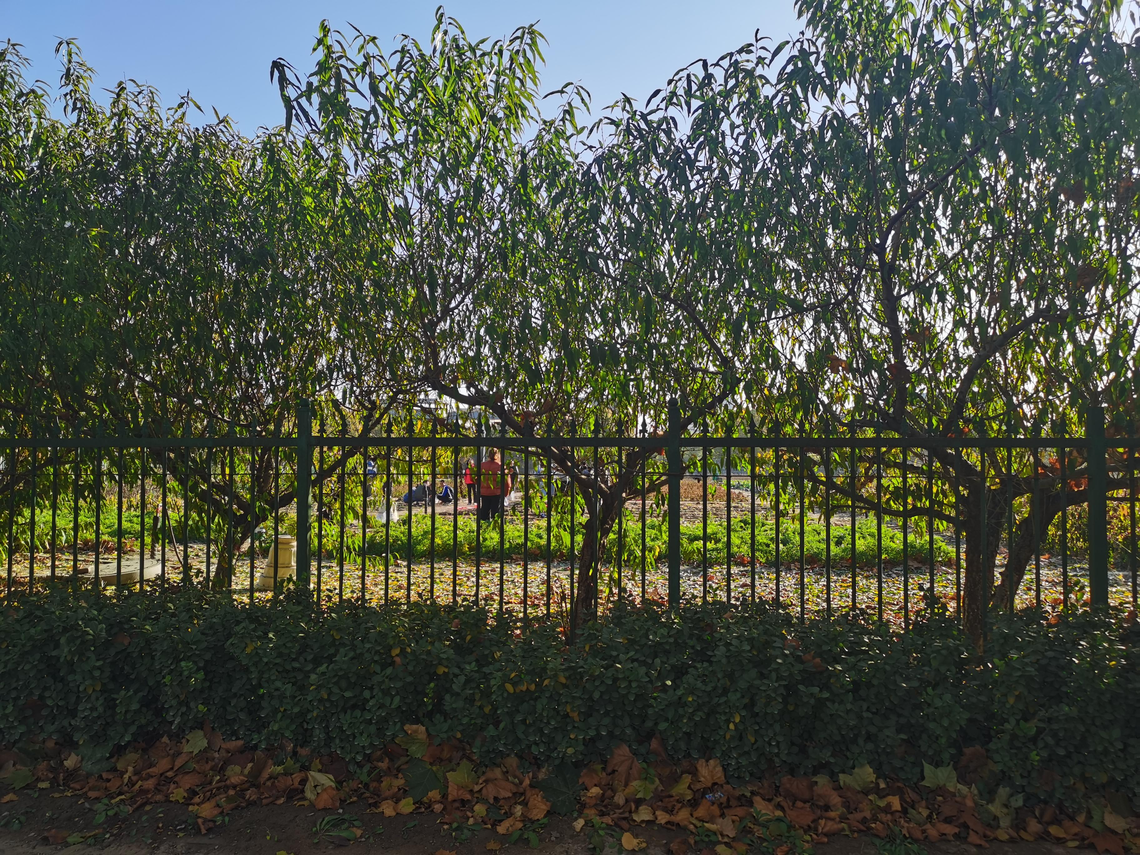 教学楼旁的小花园里,农林工程系师生在教学识别植物种类