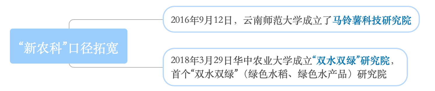我国传统农学包括7类二级专业,包括:植物生产类、自然保护与环境生态类、动物生产类、动物医学类、林学类、水产类和草学类。随着人工智能、生物信息技术等高速发展,传统农科专业正与新产业脱轨。供不“应”求:不是“供应不上”,是“供不对口”,新农科的诞生迫在眉睫。