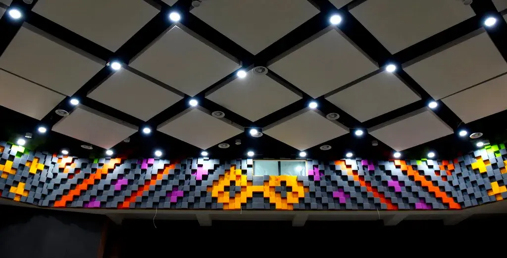 就连卫生间都很好看哦!数字马赛克贴面,暖色灯光,彩色的门。