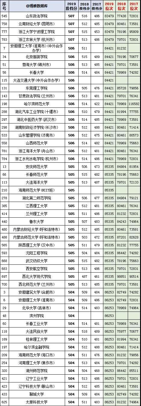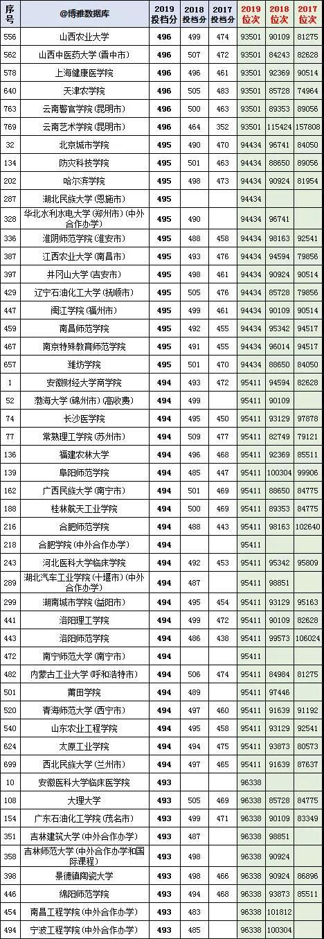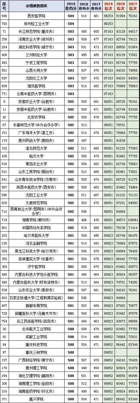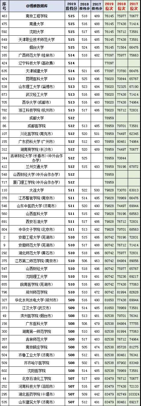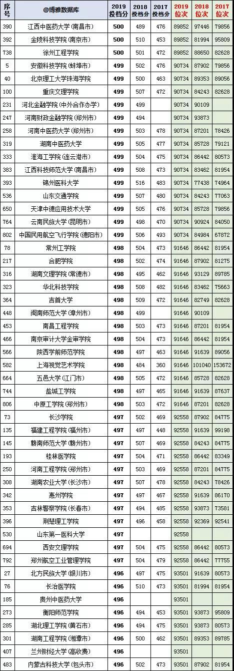 下表为2017-2019年河北省理工科第二批次各学校分数线(仅列出476分以上学校):
