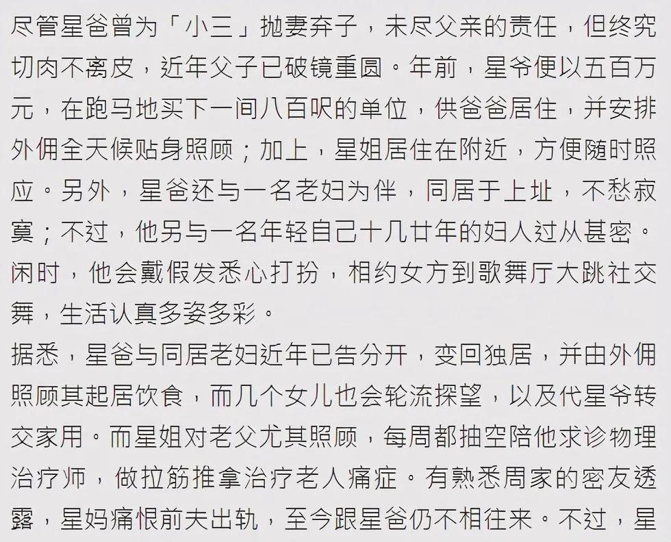 周星驰花500万为父亲买了80平米左右的住房,并请了保姆照料他的生活,周星驰的姐姐妹妹也经常去探望父亲。