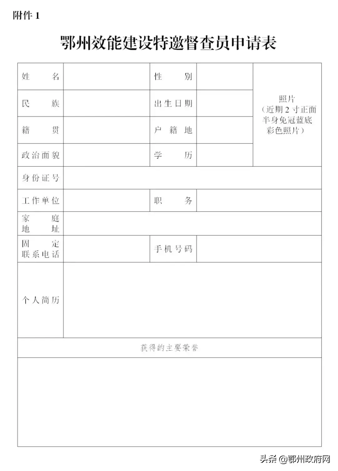 关于选聘鄂州效能建设特邀督查员的公告