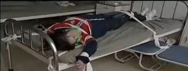但是随后就会出现好几个大汉将他带到一一间小房间里,并牢牢地绑在床上让孩子动弹不得。