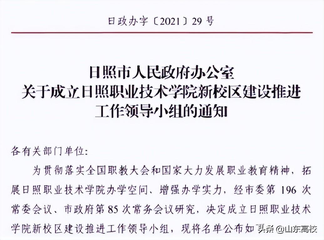 日照市人民政府也成立了日照职业技术学院新校区建设推进工作领导小组。