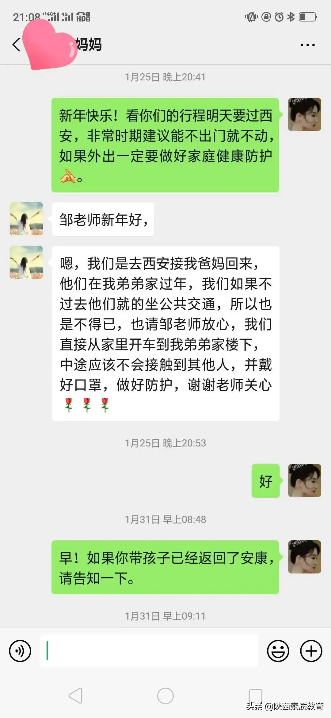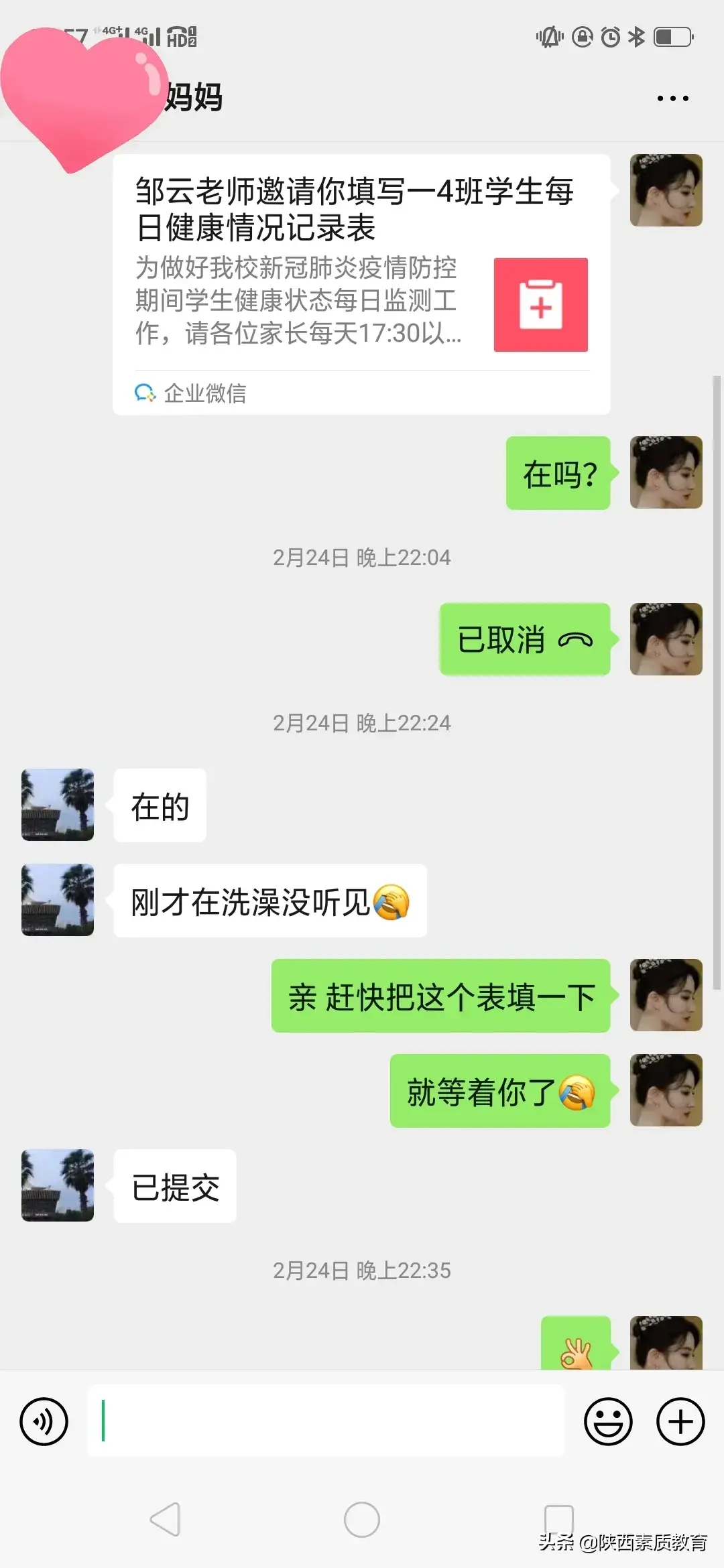 早在1月20日前后,我们学校敏锐地认识到疫情形势的严峻性,从学校领导到教职工,上下高度统一思想,坚决做好疫情宣传和健康追踪工作,要把学生的生命安全和健康放在第一位。从此,“班妈”几乎全天候上岗,通过班级微信群当好宣传员,提醒家长务必做好防范。还要摸清学生假期的出行动向,了解学生每日健康状况,审核家长提供的数据,对于敏感数据还需与家长再三确认,最后做好统计上报。每天在审查数据时,生怕自己班上的孩子有什么异常,任何数据的波动都会牵引“班妈”的心。