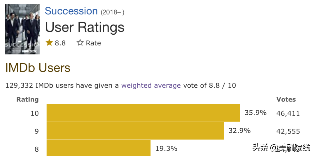 IMDb 13万人标记的8.8分,并且是第72届艾美奖的最大赢家之一,拿下了剧情类最佳剧集、最佳编剧以及最佳男主等一系列大奖。