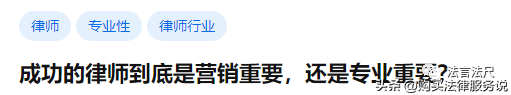 强调营销能力重要不等于专业能力一点没有,毕竟专业营销也是法律营销的必要组成部分。只不过为达到营销目的而需要的专业输出,放在专业领域来看,门槛真的不高。从办理案件的角度,专业价值输出的服务质量,而法律营销的角度,专业价值的输出是承接案件及获取更高收费,侧重点不一样,有关联性、但无等比关系。
