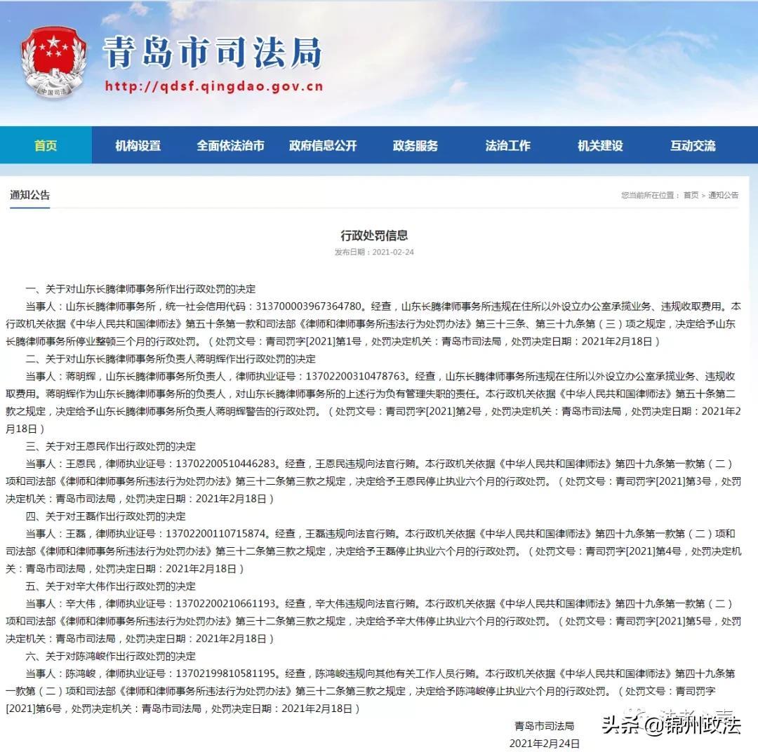 一、关于对山东长腾律师事务所作出行政处罚的决定