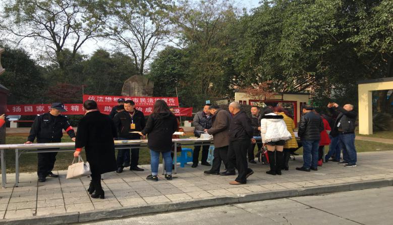 2017年12月4日,市律协温江分会组织辖区内20余名律师在温江区柳城街道凤溪法律服务街区举行“弘扬国家宪法精神,助力法治成都建设”主题法治宣传活动。活动现场向群众免费发放宣传资料,发放温江区公共法律服务中心法律援助服务指南、律师服务指南、公证服务指南、人民调解服务指南等宣传册,接受现场免费咨询50余件。