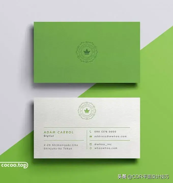 名片色彩的对比是不可缺的因素,无论是对比强烈还是对比微妙,都要把握色相、饱和度、冷暖的色阶变化,形成丰富的画面效果。设计师要注意使色彩的区域对比,又要使画面的色调协调统一。处理好名片的色彩对比关系,就能增强画面的视觉感染力。