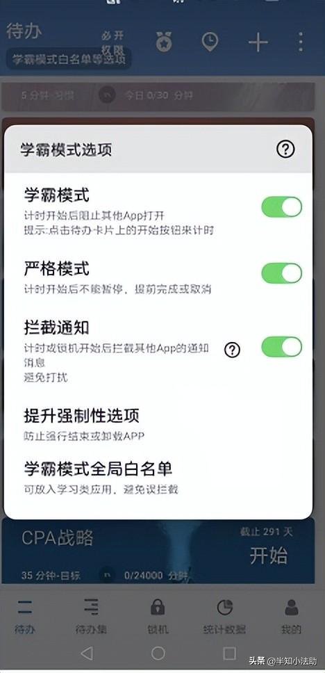 把学霸模式开启,各种权限调到最高。一旦开始专注,不到时间,你怎么都玩不了手机,重启都没用,简直是自虐的极品软件。