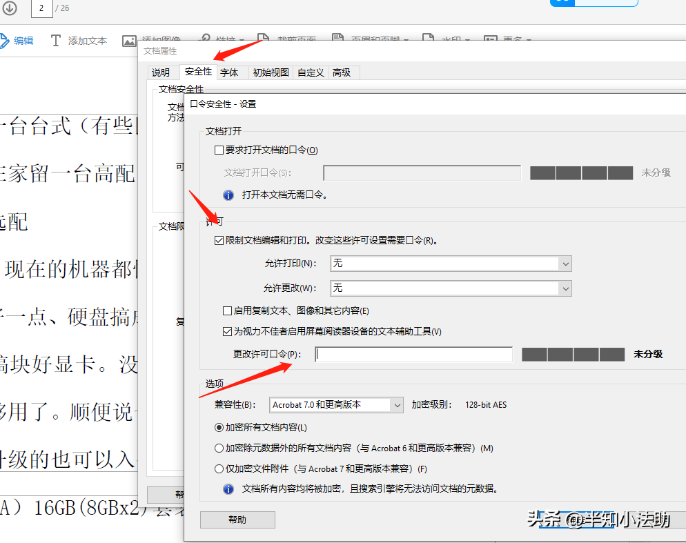 上图是对PDF进行加密,包括打开密码,只读密码两类。 下面看看怎么给PDF加上水印。