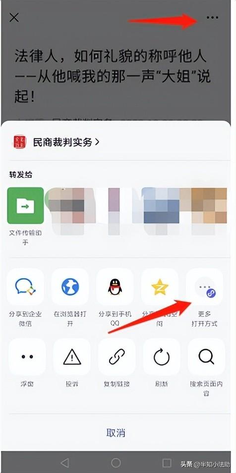 收集微信公号文章的方式也很简单。手机上安装有道云笔记APP并登录后,打开要收集文章,点上面那三个点,然后选择更多打开方式,保存到有道云笔记就可以了。不仅能把文字保存下来,公号里的图都能保存下来,扒文章的的必备良器。