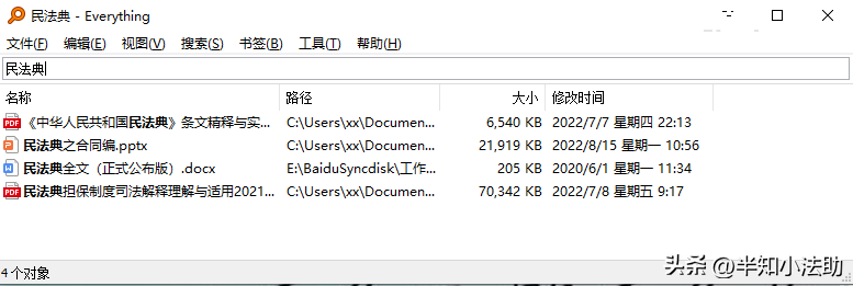 看看,不但能找出来含有这两个词的文件,还能给你把内容都标记出来。有没有一种D爆了的感觉。 这个软件用好了还能有更多神奇的用途。比如某天,法人代表群里广西一个法助吐槽说上面要求统计去年他们所有办理案件当事人的民族信息。那么,就可以把搜索范围指定在包含有所有案件判决书的目录,然后逐个搜索“族”的信息,就能完成统计。