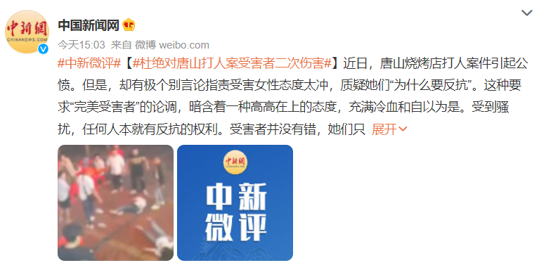 唐山打人事件发生后,网络上出现过指责被害人的负面言论,部分人甚至认为被害人面对行为人的搭讪,反应过激,完全可以采取更为平和的处理方式。
