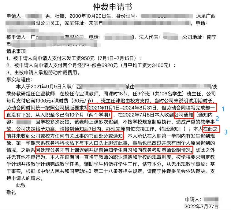 个人原因造成的,得认。但作为HR混子,以及曾经初级会计要考劳动法,不得不说小何的理由很苍白,容易仲裁失败承担好几千的诉讼费,我给出几点“看法”: