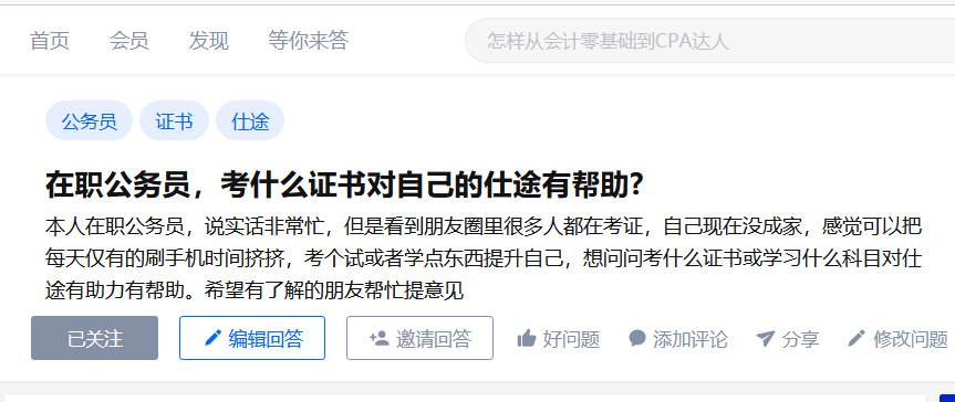 本人在职公务员,说实话非常忙,但是看到朋友圈里很多人都在考证,自己现在没成家,感觉可以把每天仅有的刷手机时间挤挤,考个试或者学点东西提升自己,想问问考什么证书或学习什么科目对仕途有助力有帮助。希望有了解的朋友帮忙提意见