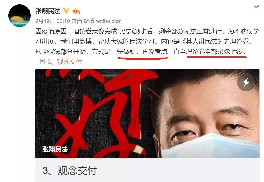 如果你现在刚开始准备复习法考,由于民法典颁布时间未定,建议可以先学民法总则部分,也可以跟着@张翔民法 老师在微博学习民法剩余部分,等理论卷课程上线后就可以跟着课程学习了。
