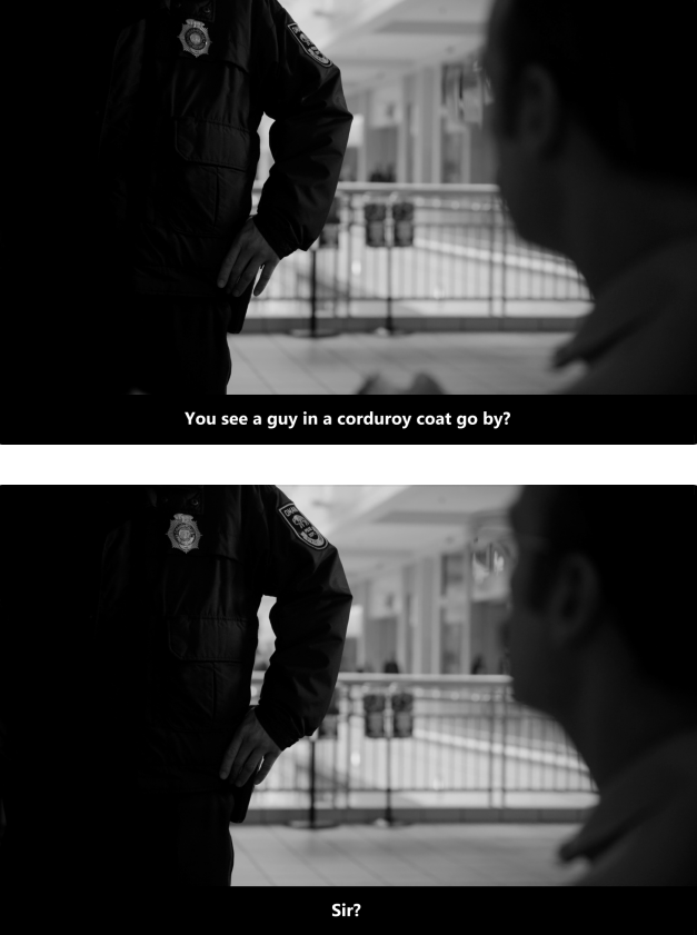 镜头28后方加入另一位巡警,前后“包围”了吉恩;