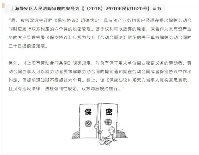 (3)《上海市劳动合同条例》(上海市人民代表大会常务委员会公告第58号)第十五条规定,对负有保守用人单位商业秘密义务的劳动者,劳动合同当事人可以就劳动者要求解除劳动合同的提前通知期在劳动合同或者保密协议中作出约定,但提前通知期不得超过六个月。在此期间,用人单位可以采取相应的脱密措施。