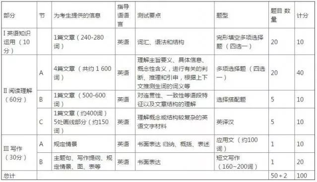 试题分三部分,共52题,包括英语知识运用、阅读理解和写作。