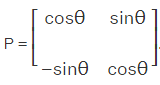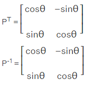 因此,P 是一个旋转矩阵。我们可以说,P 相对于二维系统中的 x 将笛卡尔坐标沿逆时针方向旋转 θ。