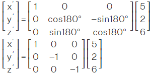 示例 2:如果 C (5, 2, 6) 绕 x 轴逆时针旋转180 度,坐标值是多少?