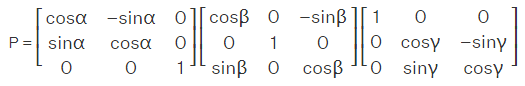 [P (z,α), P (y,β) 和 P (x,γ)]。一般的旋转矩阵表示如下: