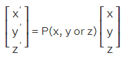 现在,如果我们想在围绕特定轴旋转后找到向量(x,y,z)的新坐标(x',y',z'),我们遵循以下公式: