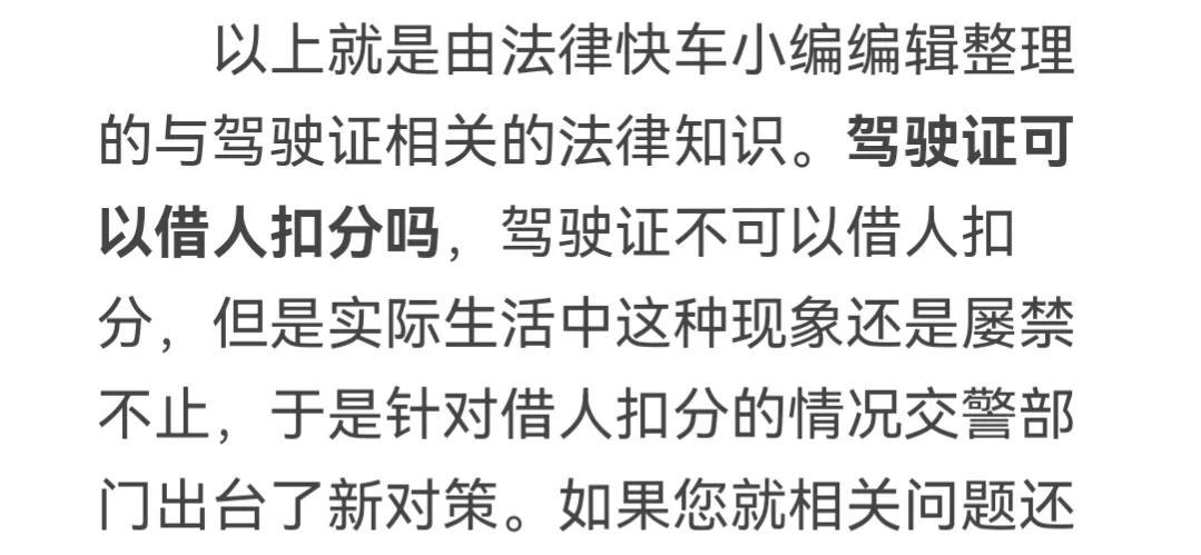 版权声明:我们致力于保护作者版权,注重分享,被刊用文章【驾照帮别人扣分违法吗(驾驶证可以借人扣分吗)】因无法核实真实出处,未能及时与作者取得联系,或有版权异议的,请联系管理员,我们会立即处理! 部分文章是来自自研大数据AI进行生成,内容摘自(百度百科,百度知道,头条百科,中国民法典,刑法,牛津词典,新华词典,汉语词典,国家院校,科普平台)等数据,内容仅供学习参考,不准确地方联系删除处理!;