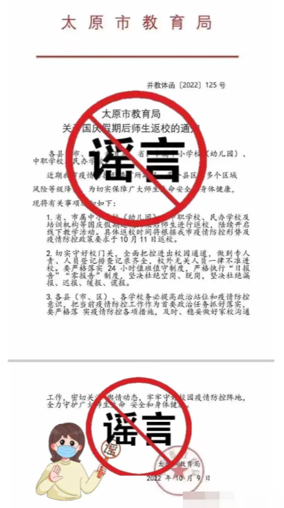 「辟谣」网传我市返校日期为10月11日?纯属谣言 @太原广播电视台新闻