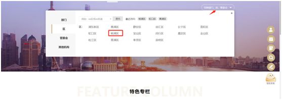 2、登入后进入个人登录页面,点击“切换部门区、管委会”,选中杨浦区进入