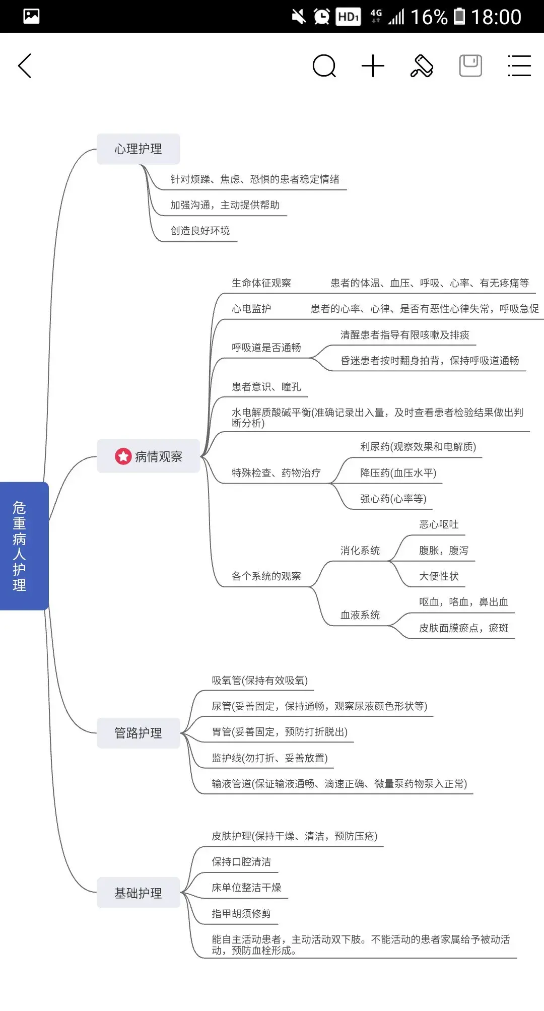危重患者病情观察非常重要,每一点都需要我们严密观察,及时汇报,经过讨论我们科室制作了一个思维导图,对危重患者的护理和病情观察进行加强学习。