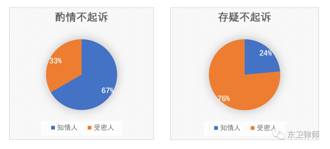 知情人多通过认罪获得酌定不起诉;受密人更多存疑不起诉。