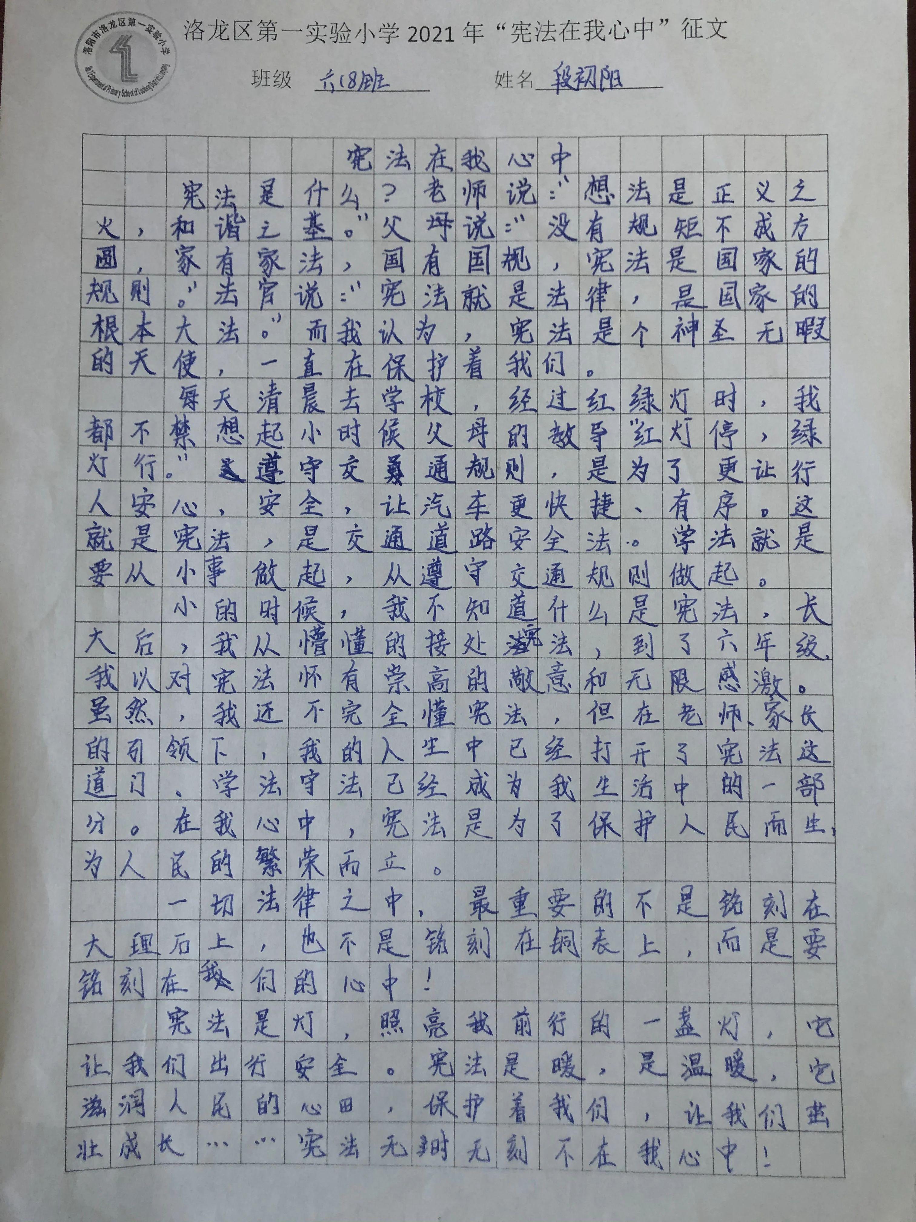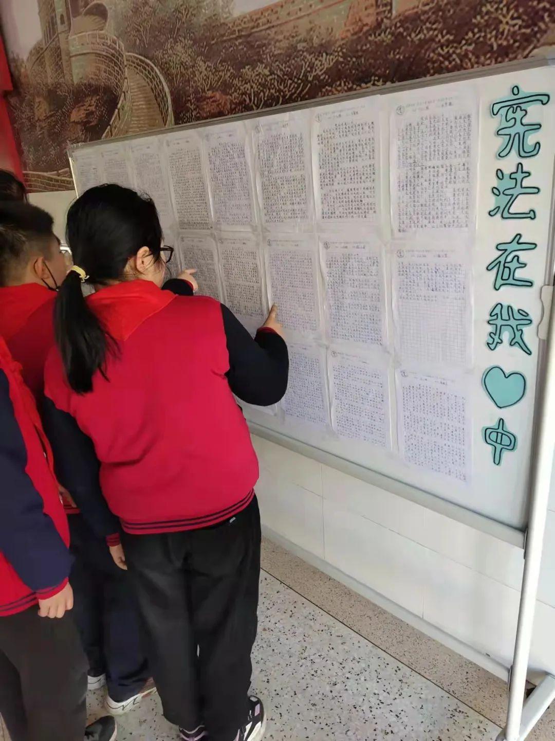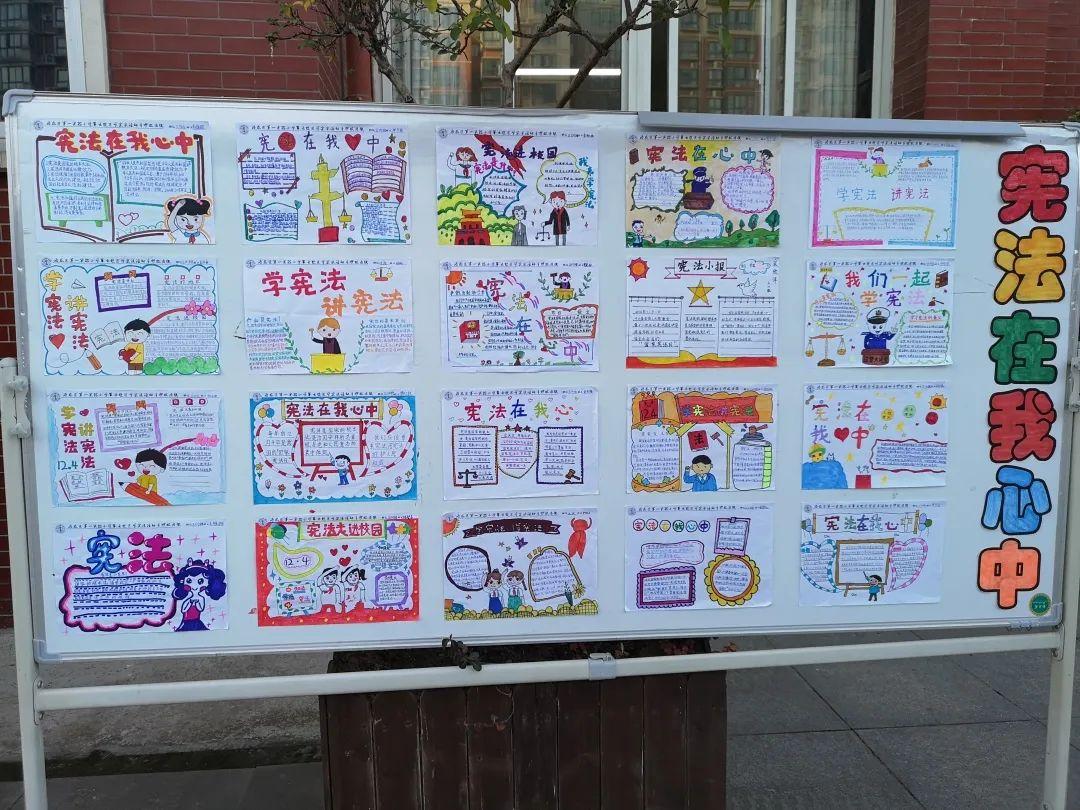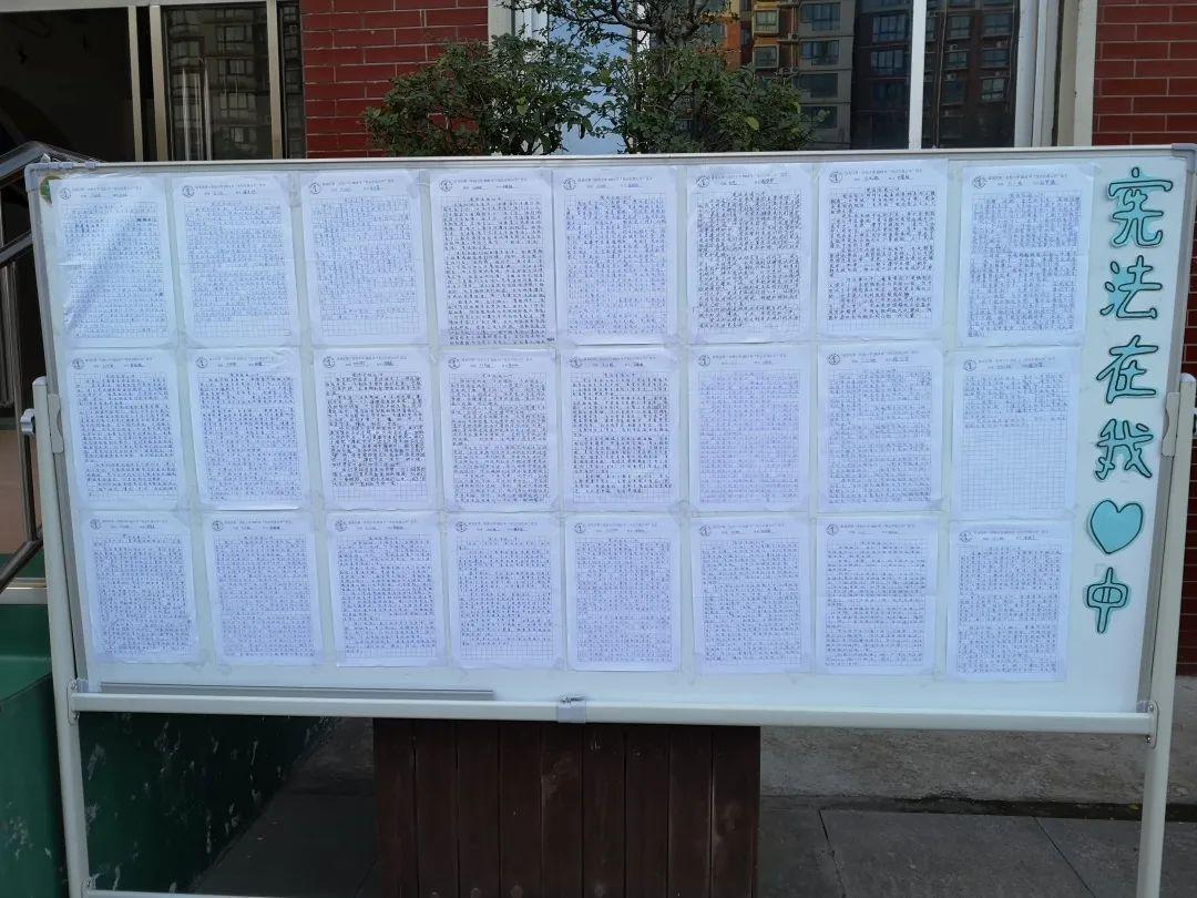 六年级各班组织了“宪法在我心中”征文活动,优秀作品被布置成宣传栏供全校师生观摩。
