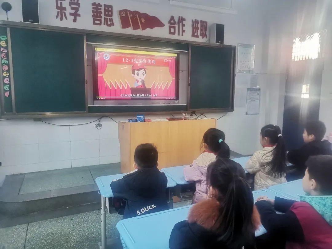 一、二年级学生利用班会课时间观看宪法知识小视频,在老师的引导解说下,同学们初步了解了各种法律法规在生活中的意义。