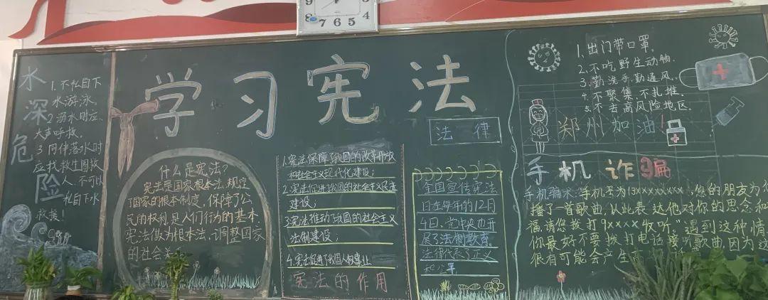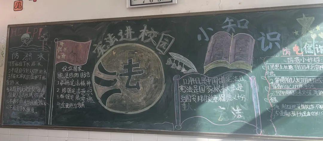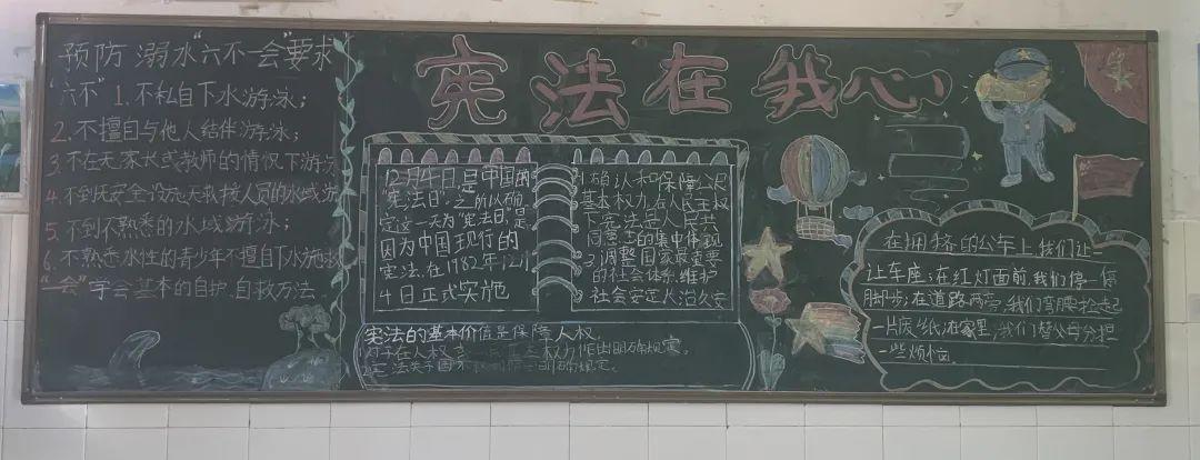 五年级各班创办了版图精美、内容丰富的学宪法主题黑板报。