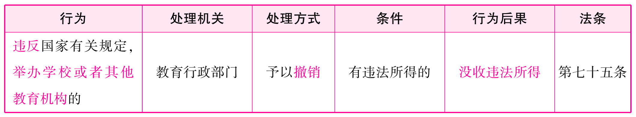 违反国家有关规定,举办学校或者其他教育机构的,由教育行政部门予以撤销;有违法所得的,没收违法所得;对直接负责的主管人员和其他直接负责人员,依法给予处分。