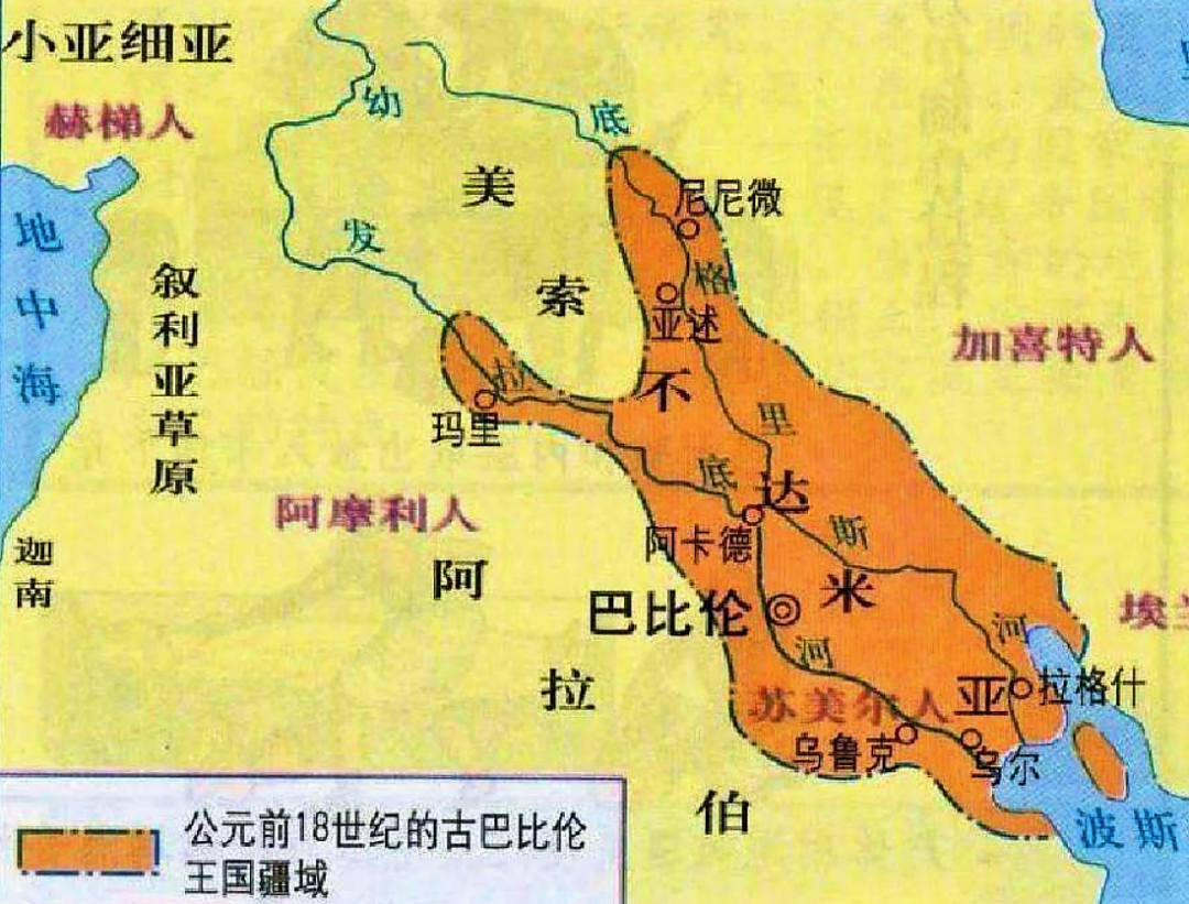 直到公元前十九世纪左右,美索不达米亚平原南部的大片地区被阿摩利人所占据,他们原本是来自西边黎凡特地区的游牧部落,并不是美索不达米亚的土著人,但他们与阿卡德人一样,都是讲闪语的人。