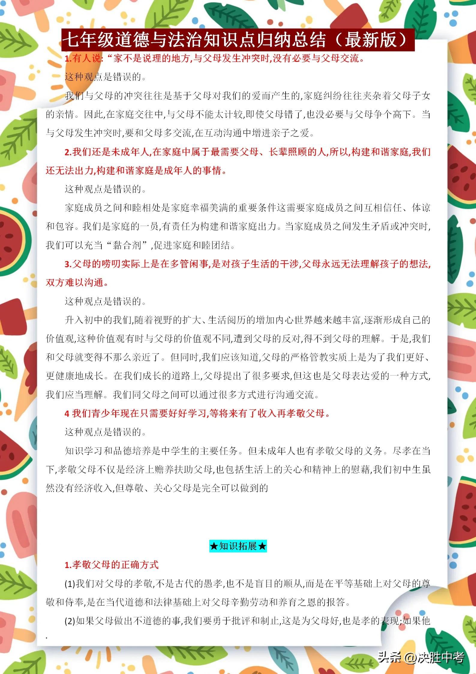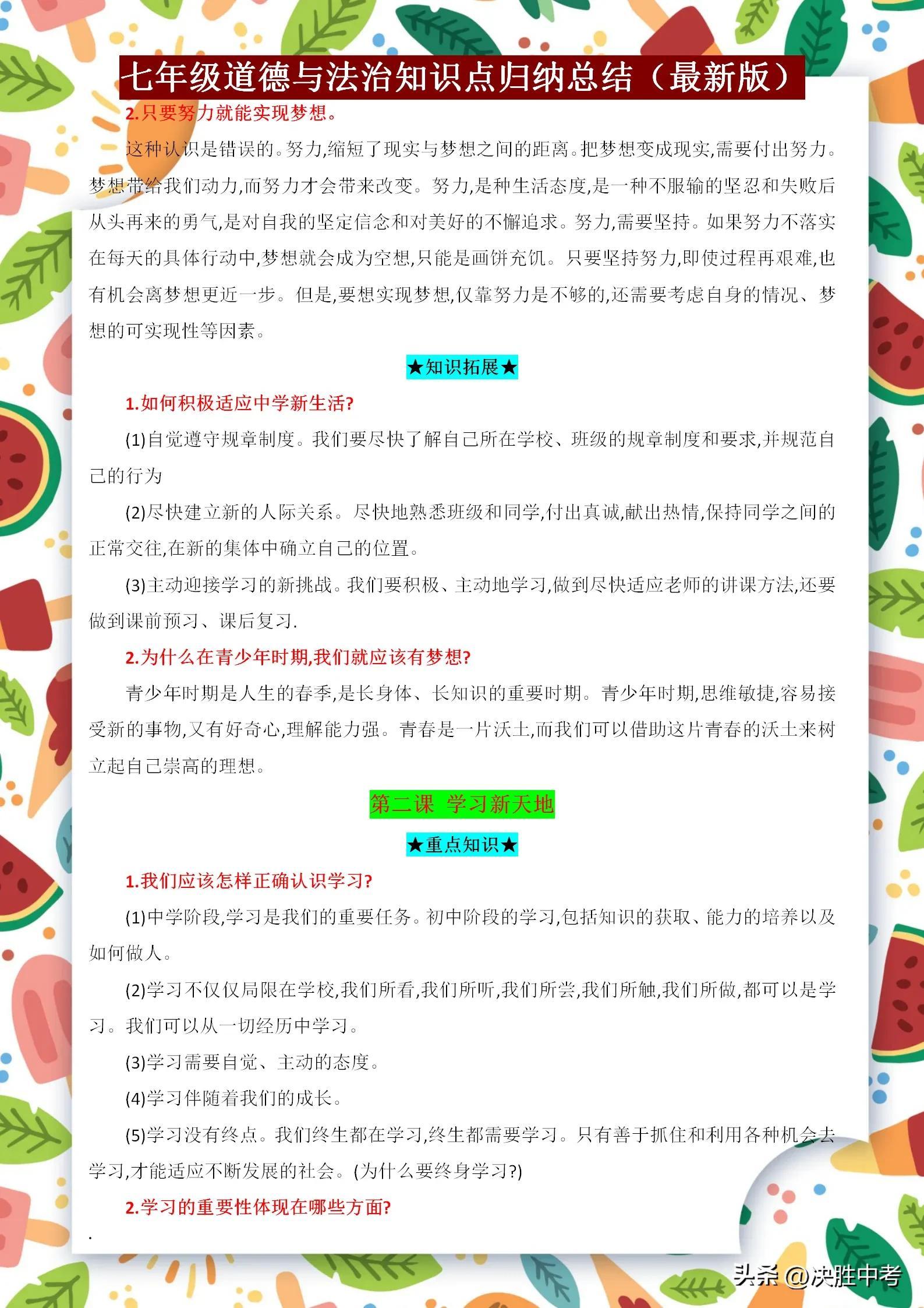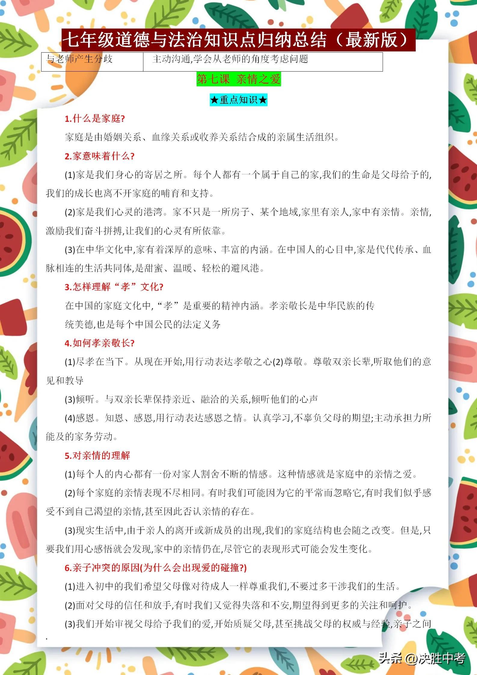 七年级道德与法治核心知识归纳总结,想做尖子生,这些都要掌握!